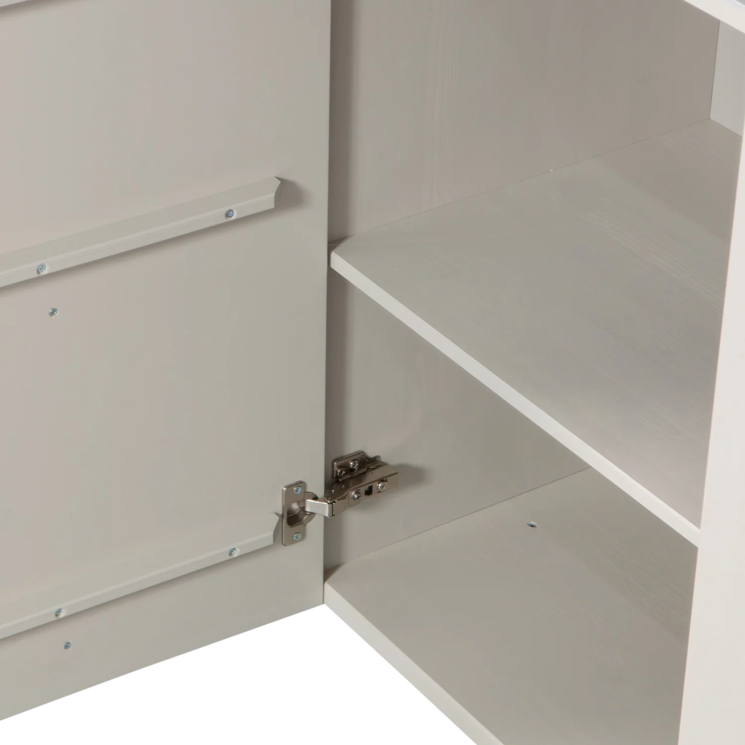 Basu heeft een hoogte van 85cm, een breedte van 200cm en een diepte van 46cm. Afmeting van de 4 kastdeuren: H 75 cm x B 50 cm en van de 8 vakken H 33 cm x B 48 cm. Het draaggewicht van de bovenzijde is 35 kg en het draaggewicht per plank is 15 kg. Basu staat op een pootje met een hooget van 10cm.