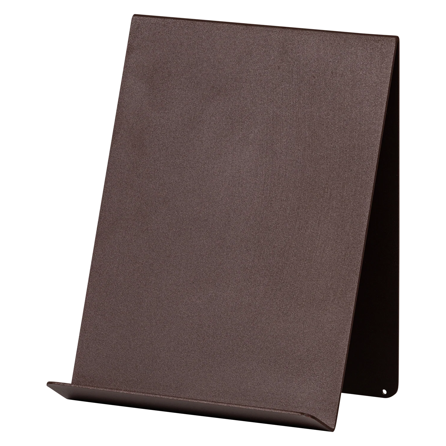 Het strakke metalen frame en de donkerbruine kleur geven de Brook boekenstandaard een rustige uitstraling. De rechte lijnen zorgen voor een opgeruimd beeld, waardoor het goed past in verschillende woonstijlen. Zet de standaard op je keukenwerkblad tijdens het koken of gebruik hem op je bureau of in de woonkamer.